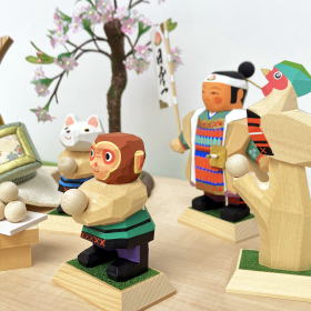 奈良時代に起源をもち脈々と受け継がれてきた精緻な彫刻技術、伊予「一刀彫」で製作された南雲作・桃太郎とお供達を合わせた当店オリジナルセットでございます。