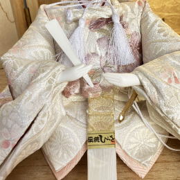 地紋の入ったお衣装の上から厚みのある刺繍を入れており、手の込んだ仕上げでとても美しく華やかです。