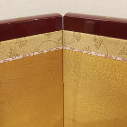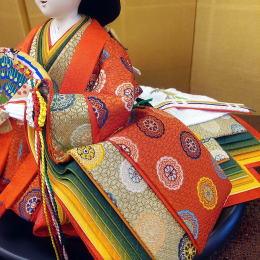 | ゆったりと、優雅な雰囲気が漂う親王飾りです。 網代細工の台に、大きな本仕立て屏風を合わせております。 本仕立て屏風は折れ目に金具(蝶番)を使わず、 木枠に和紙を重ね張りしその上から金沢箔とさらにシルクをかけて仕上げております。上品な華やかさです。 お人形の胴体は「清鳳」が、お顔は「熊倉基安」が作りました。 古典的な有職衣装です。お姫様の濃い目の重ね色が綺麗です。 お道具は、溜塗の菱台に巻物をのせております。菱型には魔除けの意味があり、巻物には、知恵がつくようにという願いが込められております。 両脇の桜橘は正絹繭玉造りのものを合わせております。 染め上げた繭玉をひとつずつ葉や花びらの形に切って作るものです。 ポリエステルのものに比べて色褪せが遅く、表面の毛羽立ち感が特徴です。 お雪洞はコードレス(電池式)で、手すき和紙を使用したものを合わせました。 灯りを点けると和紙の素材感が浮き出て綺麗です。 お姫様のお着物の重ねに入る抹茶色やお道具の紐の色と合わせて黄緑色のラインが入ったものを選びました。 とても素敵なお飾りです。末永くお楽しみ頂けると思います。 ●こちらの商品の特典(サービス品) ・サービス品@毛氈(もうせん) ・サービス品Aお手入れセット ・サービス品Bお節句説明書 ・サービス品Cお子様のお名前入り立札 ・サービス品Dお被布(お子様に着せて頂くと可愛いです) ・国内送料無料です(海外への送料につきましては有料になります) |