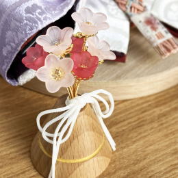 | コンパクトサイズの親王飾りです。 節句人形工芸士「博暁」作、刺繍衣装です。 ぼかし染めのお衣装に桜の刺繍を入れました。 良いことが起こる前兆を示す雲立涌の地紋が入っております。 桜は、まだ葉も揃わない内に満開のお花を咲かせることから、「成功」「生命力」の象徴といわれております。 お雪洞の代わりに、お屏風が照明になっており、 灯りを点けると、麻和紙の素材感と桜の蒔絵がより一層綺麗に見えます。 (照明付きお屏風はコード式です。) お飾り台は、無垢のタモ材を使用しております。 傷つきにくい硬い木質と、癖のない木目が特徴です。 丸いフォルムが可愛いうさぎさんの背中に桜を置いたお道具と、小さな花束のお飾りで、 ほっこり優しい雰囲気に仕上げました。 ●こちらの商品の特典(サービス品) ・サービス品@毛氈(もうせん) ・サービス品Aお手入れセット ・サービス品Bお節句説明書 ・サービス品Cお子様のお名前入り立札 ・サービス品Dお被布(お子様に着せて頂くと可愛いです) ・国内送料無料です(海外への送料につきましては有料になります) |