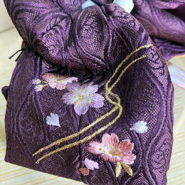 良いことが起こる前兆を示す雲立涌という縁起の良い地紋のお衣装の上から、桜の刺繍を入れております。