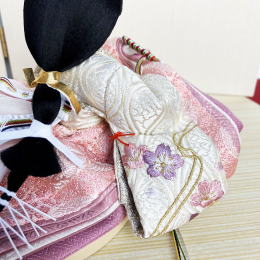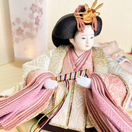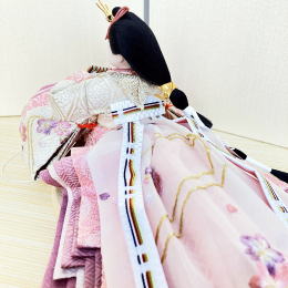 裾を長く取ったお衣装の着せ付けが特徴的なお飾りです。
