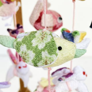 | 淡いピンクを基調とした、縮緬(ちりめん)素材の可愛いつるし飾りです。 高さ35cmと小さいサイズで、現代の小さめの雛人形に合わせやすいサイズ・デザインです。 この年に生まれた女の子の幸多かれと願って、一針一針縫いあげたぬいぐるみの飾り物です。江戸時代より受け継がれる、縁起が良い飾り物です。 ※縮緬(ちりめん)とは絹を平織りにして作った織物です。 縦糸に はほとんど撚りのない糸を使い、横糸に強い撚りをかけた右より(右回りにねじる)と左 より(左回りにねじる)の糸を交互に織ったものです。そのため精練すると布が縮み生地の表面に凹凸が現れます。 国内送料無料です(海外への送料につきましては有料になります) |