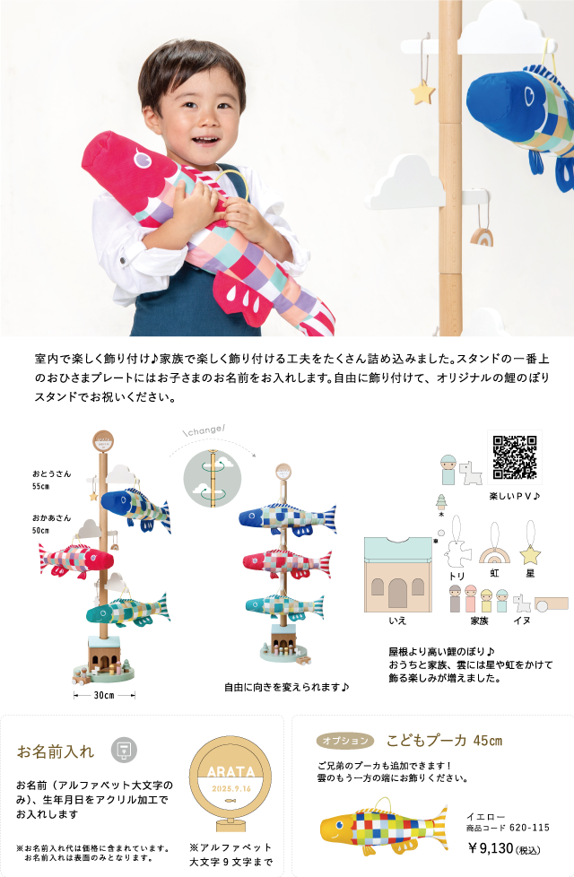 鯉のぼりのデザインは温もりのあるパステルカラーを使い、