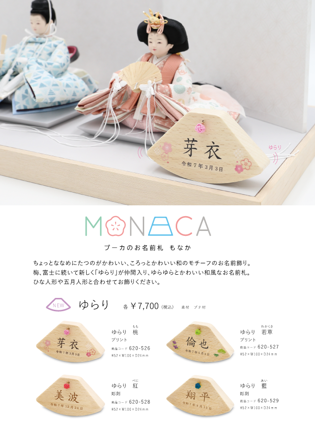 梅、富士に続いて新しく「ゆらり」が仲間入り、ゆらゆらとかわいい和風なお名前札。