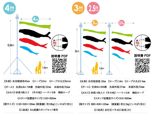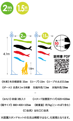 必要な工具もセットされていますので、本格的な大型鯉のぼりをお手軽に飾れるこいのぼりセットです。