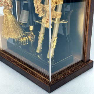 支柱をなくすことで破魔弓飾りの見栄えをよくする工夫を凝らしたパノラマ型で、軽くて割れにくい安全性の高いアクリル素材を使用しております。