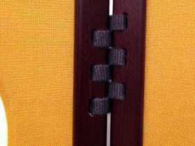 正絹糸を巧みに使い3.2mm間隔で幾度も糸を通し作られる為、通常の甲冑製作よりも多量の正絹糸と数倍の手間を要し仕上げられております。