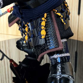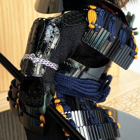 伊達政宗特有の三日月をモチーフとした存在感のある弦月之前立や、兜の整備の簡易・便利性や防御力と生産力を向上させる為に考案された大型の金属板=伊予小札を正絹黒糸で吊り造られた素懸(すがけ)威し等、甲冑師「雄山」が本格的な甲冑を製作しました。