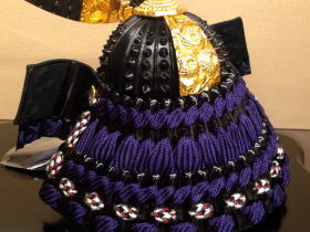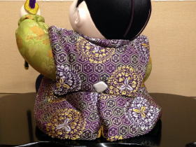 上品な文様があしらわれた正絹生地を使用し、綺麗な配色で丁寧に着せ付けされた人形には、脇飾りの伊達政宗之兜をかぶらせる事が可能でございます。