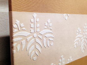 ※「京唐紙」とは、中国の唐から奈良時代に伝わった美しい細工紙が始まりです。京からかみを簡単に言うと版画の一種の様なもので、手彫りされた朴の木を使い、その表面に雲母(キラ)と呼ばれる絵具を付け、一枚一枚職人の手の平で和紙に文様を写し出すという伝統的な手法で作られています。今もなお襖や壁紙など室内装飾の伝統工芸品として伝え続けられている京都の伝統産業品の一つです。