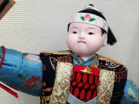 「真多呂」作、愛らしい木目込人形「桃太郎」ケース飾りでございます。 ふっくらほっぺに口を一文字に結んだ誇らしげなお顔立ちが特徴的なお人形です。 日本一の旗と軍扇を手に持ち片足で赤鬼を踏みつけている様は、まるで昔話の桃太郎が鬼退治したワンシーンを連想させます。 上品な柄の正絹生地を使用し熟練した技術で丁寧に着せ付けされており、コンパクトサイズのお人形飾りですが高級感漂います。 木目込み作家の中でも著名な「真多呂」ならではの独自の感性で鬼退治を終え勝ち名乗りを上げる桃太郎を生き生きと表現した躍動感あふれる美しい造形が見事で愛らしい木目込み人形でございます。 ・国内送料無料です(こちらの商品は海外への発送はできません)
