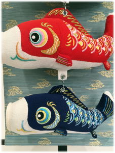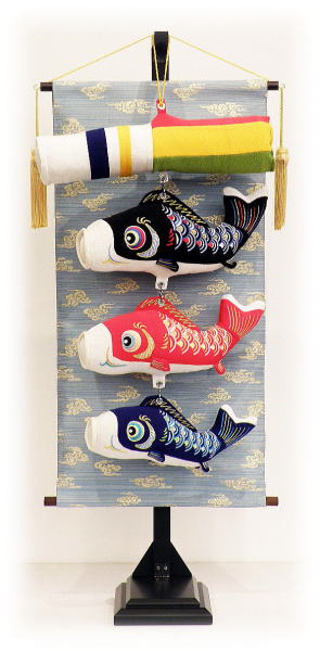 雲が浮かぶ青空をイメージしたタペストリーを背景に悠々と泳ぐ鯉のぼりが可愛らしい吊るし飾りです。 手触りの優しいちりめん素材を使用し、刺繍で模られたうろこが豪華な鯉のぼりが特徴的です。 国内送料無料です(海外への送料につきましては有料になります)