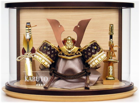温かみのある天然木目で開放感のあるアクリルケースに、茶系色の色彩にこだわった綺麗な兜か良く映えます。