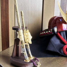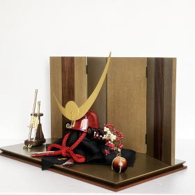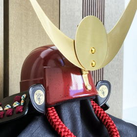 また、プレスして型抜きする抜き鉢ではなく、数十枚もの金属板を加工して一つ一つ手作業でかし止めて鉢を形成していく頭形矧ぎ合せ鉢の技法で作られ、斑模様が上品で美しい茶褐色塗りの兜鉢や、本物の金を溶かして塗り仕上げる本金(24金)鍍金を施した真鍮製の鍬形も特徴的で大変豪華です。