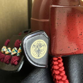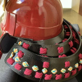 兜の整備の簡易・便利性や防御力と生産力をより向上させる為に考案された大型小札=伊予小札を正絹糸で吊りながら形作る素懸(すがけ)威しを熟練した技術で見事に再現した高級感漂う重厚な兜です。