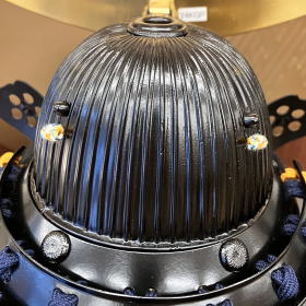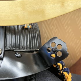 仙台市博物館所蔵の重要文化財・伊達政宗公之兜を忠実に模写した甲冑師「雄山」作、1/3伊達政宗兜でございます。