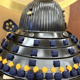 生命力に溢れ不老不死の力を宿すといわれる三日月をモチーフに、戦に常勝して命を繋ぐ=家系を絶やさないという強い意志を表現したと言われている存在感のある金箔押の三日月型の前立=弦月之前立や、整備の簡易・便利性や防御力・生産力を向上させる為に考案された大型の金属板=伊予小札を正絹黒糸で吊るした素懸威しに加え、六十二間という細かな間隔で丁寧に筋入れし精巧に作られた兜鉢が特徴的です。