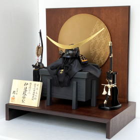 黒色で統一した色彩と強い意志を宿す金箔押の弦月之前立から力強さが感じられます。