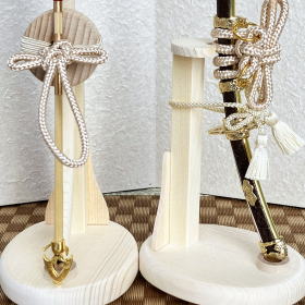 | 甲冑師「雄山」作、超絶技巧金物シリーズ 7号兜「夜香桜」(やこうざくら)でございます。 四代目「雄山」が花をモチーフに精巧なデザインの鍬形飾台金具・吹き返し金具を配し、威には鉄色(スチールグレー)の落ち着きのある色合いの正絹糸を使用して製作しました。 金具は日本の春を象徴する「桜」と、その蜜を吸う鳥「メジロ」を模りました。年度初めに咲くことから幸先の良い始まりを象徴し、一斉に咲き誇る様子から繁栄や豊かさを連想させる「桜」、集団で細い枝に留まる習性から目白押しの語源と言われ、楽しい物事や見どころが次々に続いていくようにという願いが込められた「メジロ」で大変縁起の良い取り合わせになっております。 上品な鉄色(スチールグレー)の正絹威しの裾部分に、淡い桜色の正絹糸で一筋のラインを入れた威しで、夜の咲く桜「夜桜」を表現しました。 プレスして型抜きする抜き鉢ではなく数十枚もの金属板を加工して一つ一つ手作業で鋲打ち止めて鉢を形成していく矧ぎ合せ鉢や、綺麗に磨き本金(24K)鍍金された真鍮製の鍬形を使用しております。 7号と小さいサイズの兜ですが、四代目「雄山」が花をテーマに上質で気品ある兜を目指して製作した兜です。 美しい天然木目が特徴で上質な檜を使用し、市松柄でモダン配色の畳がインテリアに調和しやすい飾台に、柔らかみのある繊細な風合いを持ちながら丈夫で耐久性があり、薄くてムラが少ないという特徴を持つ上質な「美濃和紙」をはり仕上げた屏風を合わせました。 長い歴史を持ち独自の技法でつくられる美しい手漉き和紙「美濃和紙」屏風に、縁起の良い取り合わせ「桜とメジロ」の装飾金具が豪華な兜が良く合います。 ※「美濃和紙」とは、岐阜県美濃市を中心に1300年の歴史を持つ日本三大和紙の一つで、薄くても丈夫で繊細な風合いが特徴です。独自の流し漉き技法と縦揺り・横揺りを組み合わせることで、均一でムラの少ない高品質な紙が生まれます。原料処理には板取川の清流を利用しており、その技術は国指定重要無形文化財やユネスコ無形文化遺産に登録されております。 ●こちらの商品の特典(サービス品) ・サービス品@緑色の毛氈(もうせん) ・サービス品Aお手入れセット ・サービス品Bお節句説明書 ・サービス品Cお子様のお名前入り立札 ・サービス品D陣羽織(お子様に着せて頂くと可愛いです) ・国内送料無料です(海外への送料につきましては有料になります) |