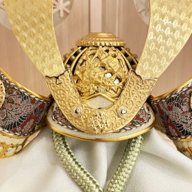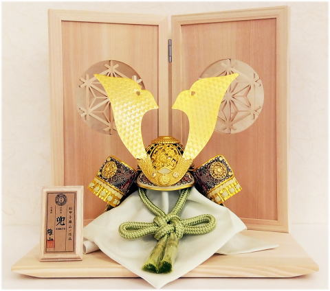 | 甲冑師「雄山」作、7号天賦之兜「葵」でございます。 古代・中世の織物を復元する染め織工芸として有名で希少価値が高く独特な絵柄が特徴的な高級織物「龍村美術織物」を贅沢に使用した眉差・吹き返しと新緑をイメージし淡い緑色の正絹糸で仕上げた優しい色合いの威しが特徴的な兜です。プレスして型抜きする抜き鉢ではなく数十枚もの金属板を加工して一つ一つ手作業で鋲打ち止めて鉢を形成していく矧ぎ合せ鉢や、綺麗に磨き本金(24K)鍍金された真鍮製の鍬形、本金(24k)鍍金された正倉院文様を模った豪華な装飾金物を使用しており高級感漂います。 7号と小さいサイズの兜ですが、四代目「雄山」が新緑をイメージし色彩やデザインにこだわり仕上げた兜です。 狂いが生じにくい特性を持ち美しい天然木目が特徴の高級木材「桧」材で作られた台・屏風です。長い歴史を持ち鹿沼を代表する伝統工芸品「鹿沼組子」をはめ込み仕上げました。 無垢の「桧」材を使用し天然木の温もりを感じられる台と屏風に、色彩の美しく上品な天賦之兜を合わせたオリジナルセットでございます。 ※「龍村美術織物」とは、往古の時より残された古代、中世の織物を復元させたものを言います。龍村美術織物は、染め織工芸に対する功績により芸術院恩賞を受け、大正末期初代龍村平蔵の創業から古代織物およびそれらを基盤とする美術創作の伝統を受け継ぎ、今なお世界的に認められる美術織物です。 ※「鹿沼組子」は組子細工とも呼ばれ、小さく切り出した木片を、釘を使わずに組み合わせて美しい幾何学模様を描く工芸品です。木片の切り出しから行い、各パーツには組み合わせる際にパーツ同士を噛み合わせるための溝を彫ります。切り出したパーツをカンナやノコギリ、ノミなどを使って調整し、一切釘などの金属を使わずに丁寧にひとつひとつ手作業で組み合わせて作られます。木を組み込んでいく工程は紙1枚の厚さでもずれてしまうと組み付けが出来なくなるほどの細かい作業で、熟練した職人の技術と木を知り尽くす知識が無いと作ることができない貴重な伝統技術です。 ※「桧」とは、「火の木」=「火起こしに使う木」という事が名前の由来である桧は、火が起こせるほど内部まで乾燥いており、狂いを生じにくい特性を持ち、害虫や不朽菌に対する耐久性、香りによる鎮静作用、気分を和らげる快適性増進作用などの優れた性質を持ちます。他の針葉樹に比べ成長するのに年月がかかる桧は、希少価値のある高級木材とされます。 ●こちらの商品の特典(サービス品) ・サービス品@緑色の毛氈(もうせん) ・サービス品Aお手入れセット ・サービス品Bお節句説明書 ・サービス品Cお子様のお名前入り立札 ・サービス品D陣羽織(お子様に着せて頂くと可愛いです) ・国内送料無料です(海外への送料につきましては有料になります) |
