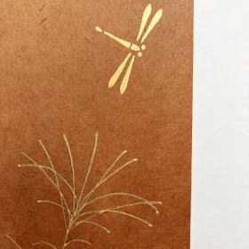 ※「トンボ」は、害虫を食べ駆除する事から勝虫(かちむし)とも呼ばれ、昔から縁起の良い虫とされています。またトンボは前へ前へ飛び、後ろに下がらないことからも勇猛果敢で勝負強い虫として勝利を呼ぶ虫と言われ、兜の前立てや武具に用いられました。