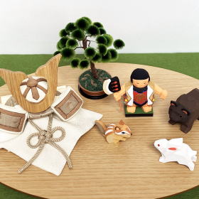 奈良時代に起源をもち受け継がれてきた精緻な彫刻技術、伊予「一刀彫」で製作された南雲作・金太郎とお供達を合わせた当店オリジナルセットでございます。