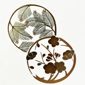 ※「梅花」は、梅は冬の寒さを畏れず、風雪の中でも凛々しく開花する事から逆境に強い強靭な精神を持ち、香りもすがすがしく清らかで美しい上品な花の様子から純潔な姿、高潔な性格を持つと言われております。また、冬の終わりから早春にかけ、百花に先立って咲くことから、他の花と春をめぐって争わない、孤高で人に迎合しない品格を持つと言われ、古来より人々に愛されてきた吉祥文様です。
