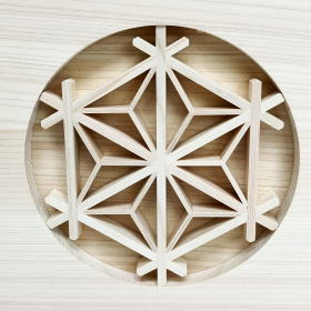 ※「組子」は組子細工とも呼ばれ、小さく切り出した木片を、釘を使わずに組み合わせて美しい幾何学模様を描く工芸品です。木片の切り出しから行い、各パーツには組み合わせる際にパーツ同士を噛み合わせるための溝を彫ります。切り出したパーツをカンナやノコギリ、ノミなどを使って調整し、一切釘などの金属を使わずに丁寧にひとつひとつ手作業で組み合わせて作られます。木を組み込んでいく工程は紙1枚の厚さでもずれてしまうと組み付けが出来なくなるほどの細かい作業で、熟練した職人の技術と木を知り尽くす知識が無いと作ることができない貴重な伝統技術です。