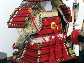 甲冑師「朔太郎」作、4号赤褄取威之鎧「暁」でございます。
