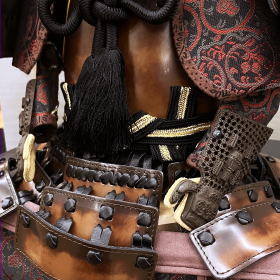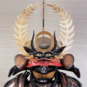 古来からの甲冑製作の知識と技術を活かし、現代の感覚でアレンジしたプレミアムスタイリッシュな「和モダンな甲冑」をテーマに制作されたデザイン甲冑。伝統的な風気と現代感覚のデザインを兼ね備え、材料・デザインにこだわった今までにない存在感と豪華さが演出されております。