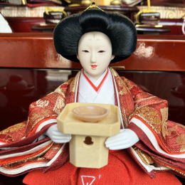 豪華なお道具類などが一式揃い、存在感のあるお飾りです。