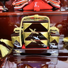 お道具は、長寿を示す鶴の蒔絵が入ったものを合わせました。