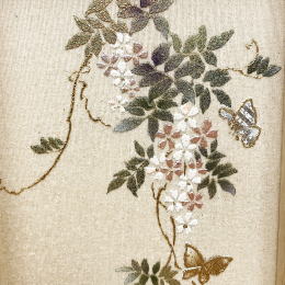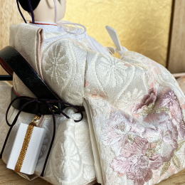 地紋の入ったお衣装の上から厚みのある刺繍を入れており、手の込んだ仕上げでとても美しく華やかです。