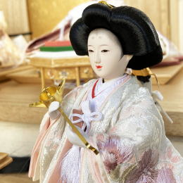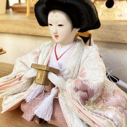 官女さんやお道具類が並び、にぎやかで楽し気なお飾りです。