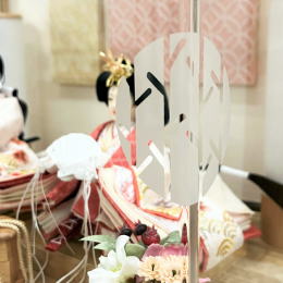 | 綺麗な木目と優しい色合いが美しい親王アクリルケース飾りです。 お人形とお人形が座る親王台は取り外すことができます。 木枠は家具にもよく使われる「栓」の木を使用しております。硬くて丈夫です。 アクリル前面の角にドットや木の枝、葉っぱの丸紋が入っております。 薄めの白色で入っているのでさりげなく可愛いです。 お人形は、伝統工芸士「小野島久佳」作です。 梅と吉祥文様である青海波の本刺繍入り衣装は、温かみのあるピンク色でほっこり可愛いです。 お姫様の裳袴には桜が透かしで入っております。 梅は、寒い時期に花を咲かせることから、桜は、まだ葉もない時期に沢山花を咲かせることから、どちらも生命力の象徴とされております。 ケース背景には、縁起の良い「麻の葉」や「七宝」柄を入れております。 「麻の葉」は、成長が早く、まっすぐ伸びていく為、お子様の健やかな成長への願いが込められた吉祥紋様です。麻の葉模様そのものに邪気を払う力があるとされ、魔除けの意味もございます。 「七宝」は、延々と続き展開できることから終わりがない為、吉祥文様とされております。 お雪洞はケースの後ろからコードが出ており、灯りが点きます。 ナチュラルな色目で場所を選ばず、飾りやすいお飾りです。 ●こちらの商品の特典(サービス品) ・サービス品@赤色の毛氈(もうせん) ・サービス品Aお手入れセット ・サービス品Bお節句説明書 ・サービス品Cお子様のお名前入り立札 ・サービス品Dお被布(お子様に着せて頂くと可愛いです) ・国内送料無料です(こちらの商品は海外への発送はできません) |
