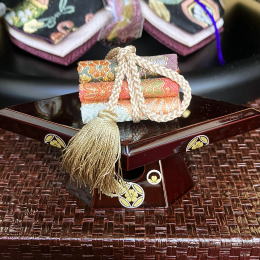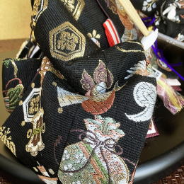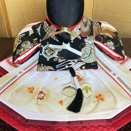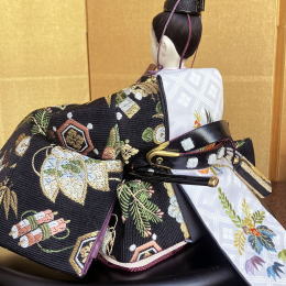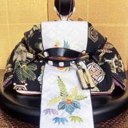 | 正絹袋帯衣装親王飾りです。 お衣装には、縁起の良い宝尽くしの柄が入っております。(下記ご参照ください) 鶴・松…長寿 桐…高貴 亀甲・丁字…健康 小槌…開運 分銅…富 隠れ笠…厄除 宝珠…招福 黒帯地でどしっと重厚感のあるお衣装です。 網代細工のお飾り台と、台の後ろからゆったりと飾ったお屏風がお人形の悠々とした雰囲気によく合います。 桜橘には、正絹繭玉を使用しております。染めた繭玉を葉や花の形に整えて作られた上質な一品です。 お雪洞も一味違ったものを合わせました。手漉き和紙の素材感を楽しめるムーディなお雪洞です。 ●こちらの商品の特典(サービス品) ・サービス品@毛氈(もうせん) ・サービス品Aお手入れセット ・サービス品Bお節句説明書 ・サービス品Cお子様のお名前入り立札 ・サービス品Dお被布(お子様に着せて頂くと可愛いです) ・国内送料無料です(海外への送料につきましては有料になります) |