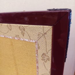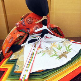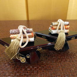 | ゆったりと、優雅な雰囲気が漂う親王飾りです。 網代細工の台に、大きな本仕立て屏風を合わせております。 本仕立て屏風は折れ目に金具(蝶番)を使わず、 木枠に和紙を重ね張りしその上から金沢箔とさらにシルクをかけて仕上げております。上品な華やかさです。 お人形の胴体は「清鳳」が、お顔は「熊倉基安」が作りました。 古典的な有職衣装です。お姫様の濃い目の重ね色が綺麗です。 お道具は、溜塗の菱台に巻物をのせております。菱型には魔除けの意味があり、巻物には、知恵がつくようにという願いが込められております。 両脇の桜橘は正絹繭玉造りのものを合わせております。 染め上げた繭玉をひとつずつ葉や花びらの形に切って作るものです。 ポリエステルのものに比べて色褪せが遅く、表面の毛羽立ち感が特徴です。 お雪洞はコードレス(電池式)で、手すき和紙を使用したものを合わせました。 灯りを点けると和紙の素材感が浮き出て綺麗です。 お姫様のお着物の重ねに入る抹茶色やお道具の紐の色と合わせて黄緑色のラインが入ったものを選びました。 とても素敵なお飾りです。末永くお楽しみ頂けると思います。 ●こちらの商品の特典(サービス品) ・サービス品@毛氈(もうせん) ・サービス品Aお手入れセット ・サービス品Bお節句説明書 ・サービス品Cお子様のお名前入り立札 ・サービス品Dお被布(お子様に着せて頂くと可愛いです) ・国内送料無料です(海外への送料につきましては有料になります) |