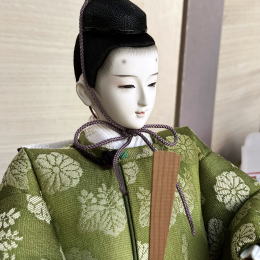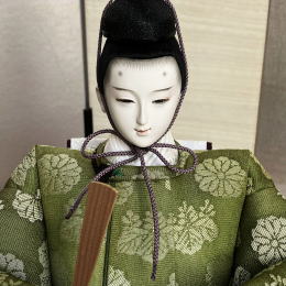 落ちついた可愛さが特徴的な引き染め友禅衣装の親王飾りです。