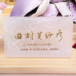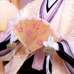 持ち物(扇・笏)にもこだわり、手描きで蒔絵を施したものをご用意しました。
