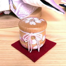 前飾りには、手描きで桜の蒔絵を入れた貝桶(お食事を保管する容器)を合わせました。