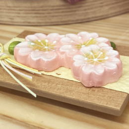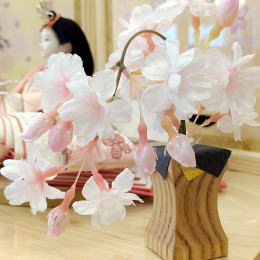 両脇のしだれ桜は木目の受け台に入り、淡いピンク色が綺麗です。