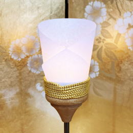 お雪洞の飾り紐やお道具の蒔絵にも金色を意識して入れております。