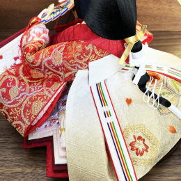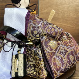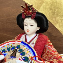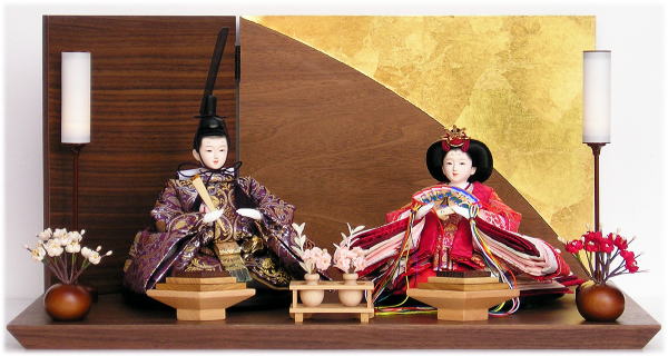 ダークブラウンの木目と大箔を散らした金屏風が目を引くコンパクトサイズの親王飾りです。 金糸のきいた華やかな西陣織金襴衣装は、繁栄を表す唐草の柄です。 木目をいかした可愛い菱餅のお道具と、コロンとした形がアクセントになる正絹繭玉紅白梅、 お雪洞も少し変わった形のものを合わせました。 ちょっとした棚にも飾りやすい奥行き30pというサイズも魅力的です。 コンパクトでも華やかさは削りたくない、という方におすすめの一品です。 ●こちらの商品の特典(サービス品) ・サービス品@毛氈(もうせん) ・サービス品Aお手入れセット ・サービス品Bお節句説明書 ・サービス品Cお子様のお名前入り立札 ・サービス品Dお被布(お子様に着せて頂くと可愛いです) ・国内送料無料です(海外への送料につきましては有料になります)