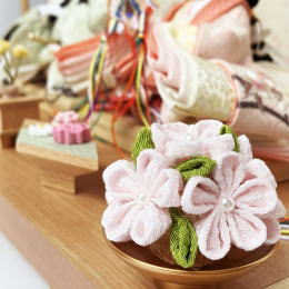 | 春めいたカラーリングが可愛らしい親王飾りです。 お衣装やお道具類に少しずつ黄色を散りばめて、あたたかでハッピーな雰囲気に仕上げました。 あちこちで登場する桜は、葉がまだ揃わないうちに満開の花を咲かせることから「成功・生命力」の象徴とされ大変縁起の良い柄です。 可愛い落雁のお道具やちりめんつまみ細工の桜橘、お屏風には革紐の蝶番、細部まで可愛さにこだわって作られております。 ●こちらの商品の特典(サービス品) ・サービス品@毛氈(もうせん) ・サービス品Aお手入れセット ・サービス品Bお節句説明書 ・サービス品Cお子様のお名前入り立札 ・サービス品Dお被布(お子様に着せて頂くと可愛いです) ・国内送料無料です(海外への送料につきましては有料になります) |