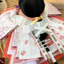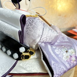 | コンパクトサイズの親王飾りです。 節句人形工芸士「博暁」作、刺繍衣装です。 ぼかし染めのお衣装に桜の刺繍を入れました。 良いことが起こる前兆を示す雲立涌の地紋が入っております。 桜は、まだ葉も揃わない内に満開のお花を咲かせることから、「成功」「生命力」の象徴といわれております。 お雪洞の代わりに、お屏風が照明になっており、 灯りを点けると、麻和紙の素材感と桜の蒔絵がより一層綺麗に見えます。 (照明付きお屏風はコード式です。) お飾り台は、無垢のタモ材を使用しております。 傷つきにくい硬い木質と、癖のない木目が特徴です。 丸いフォルムが可愛いうさぎさんの背中に桜を置いたお道具と、小さな花束のお飾りで、 ほっこり優しい雰囲気に仕上げました。 ●こちらの商品の特典(サービス品) ・サービス品@毛氈(もうせん) ・サービス品Aお手入れセット ・サービス品Bお節句説明書 ・サービス品Cお子様のお名前入り立札 ・サービス品Dお被布(お子様に着せて頂くと可愛いです) ・国内送料無料です(海外への送料につきましては有料になります) |