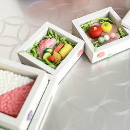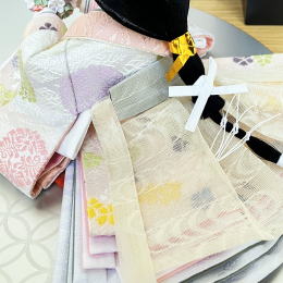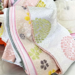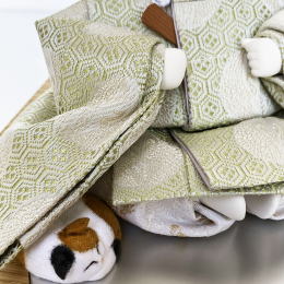 | アトリエほうこ「石川釣」作のお人形です。 春の良き日にお花見 陽だまりで、風に乗る春の香を感じながら楽しくゆったり過ごします。 猫ちゃんは丸まって、気分によってお殿様に行ったりお姫様に行ったり… ふっくらとした2人の満たされ幸せそうなお顔 ずーーーーっと見ていても飽きません。 まあるいおてても魅力的です。笏は胸元へ、扇は持たずに花手毬。 美味しそうな重箱の中身を見ながら、さてさてと物語が始まります。 お殿様のお衣装は、長寿・吉兆の印である亀甲柄、お姫様のお衣装は、繁栄の印である唐草柄と生命力の象徴とされる桜柄です。どちらも正絹西陣織を使用しております。 台座のアルミに彫られた七宝柄は調和を表す吉祥紋様です。 ●こちらの商品の特典(サービス品) ・サービス品@毛氈(もうせん) ・サービス品Aお手入れセット ・サービス品Bお節句説明書 ・サービス品Cお子様のお名前入り立札 ・サービス品Dお被布(お子様に着せて頂くと可愛いです) ・国内送料無料です(海外への送料につきましては有料になります) |