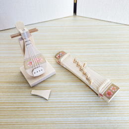 ぽてっとしたフォルムのお飾り台や白木の琵琶・琴お道具も可愛いです。