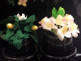 | 一秀「木村安子」作、西陣織雛5人飾りでございます。 一秀のお人形の中でも数少ないお顔です。 (通常は目が⌒⌒←このようになっているのですが、こちらのお人形は、∪∪←このようになっています。) ずれ屏風がお洒落で、金彩の桜はとても豪華です。 お月様を後ろに宵の宴の雰囲気がよくでています。 また、塗りのお屏風に反射するお人形の後ろ姿も趣深いです。 可愛らしいお菓子の重箱のセットと一対のうさぎちゃん達が乙女心をくすぐります。 コンパクトなサイズですが、塗りの質感とお洒落な雰囲気で存在感のあるお飾りです。 ●こちらの商品の特典(サービス品) ・サービス品@赤色の毛氈(もうせん) ・サービス品Aお手入れセット ・サービス品Bお節句説明書 ・サービス品Cお子様のお名前入り立札 ・サービス品Dお被布(お子様に着せて頂くと可愛いです) ・国内送料無料です(海外への送料につきましては有料になります) |
