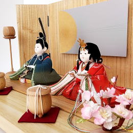 | なんとも可愛らしい表情のお雛様。正絹衣装で綺麗な発色です。 たれ目加減や、リアルな口元、繊細に表現されています。 ふっくらとしたほっぺも可愛いです。 お姫様の持ち物(巻き扇)の糸を細くしているのも小さなポイントで、繊細なお人形の雰囲気を壊さず綺麗です。 お殿様の烏帽子からのびる纓には、お月さまが透かしで入っております。 お屏風は、灯りが点くようになっております。 その為、お雪洞は灯りの点かないものにしました。 上から下までコロンとしたフォルムです。 桜橘は正絹のものを使用しております。 お雪洞のフォルムに合わせた丸い木の土台が可愛いです。 お道具の貝桶(お食事を保管する容器)も丸い木目のものを合わせました。 飽きのこない落ちつきを持ちながら、可愛さも満点の味わい深い親王飾りです。 おすすめです。 ●こちらの商品の特典(サービス品) ・サービス品@毛氈(もうせん) ・サービス品Aお手入れセット ・サービス品Bお節句説明書 ・サービス品Cお子様のお名前入り立札 ・サービス品Dお被布(お子様に着せて頂くと可愛いです) ・国内送料無料です(海外への送料につきましては有料になります) |